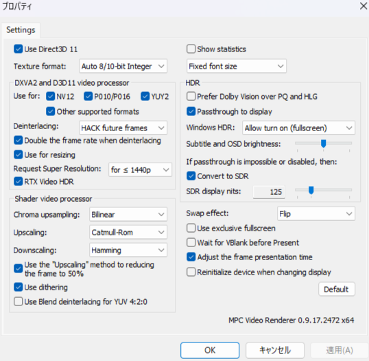 MPC-BEは二次元動画を見るのに特化した動画プレーヤーソフトです。GPUを使用して1フレームづつレンダリングして、プレーヤーに上乗せしてる感じですね。そのため、GPUが搭載されているPCがないと厳しいと思います。このアプリ一つで今まで欲しかったほしい機能すべてを備えています。(本当にそれくらい設定項目が多い!!)なので、MPC-BEを使った人はもう前の動画プレーヤーに戻れなくなるはず!!ぜひお試しください!!